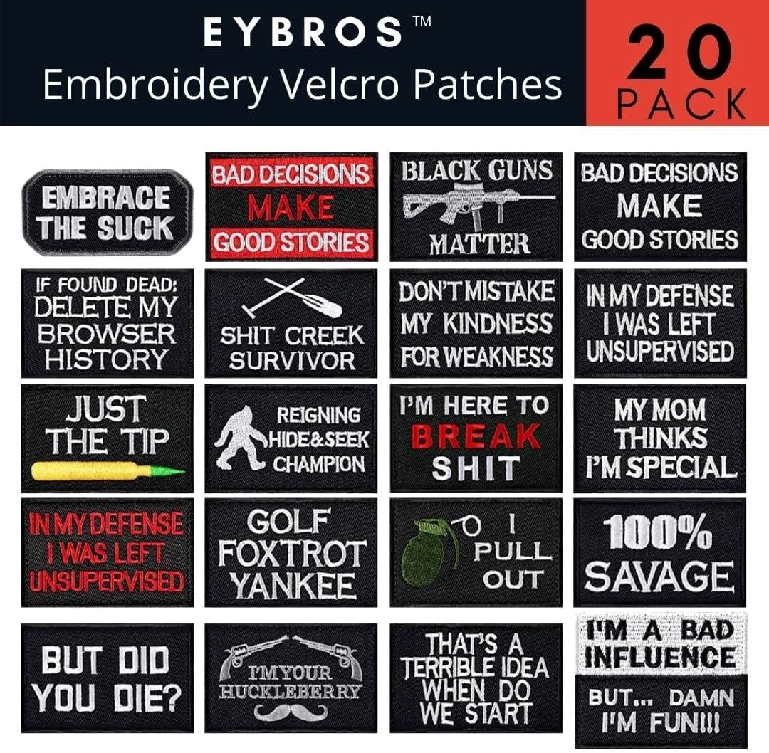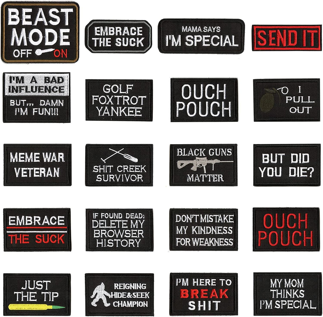 Lot de 20 patchs de moral tactique pour sacs à dos, chapeau, etc.