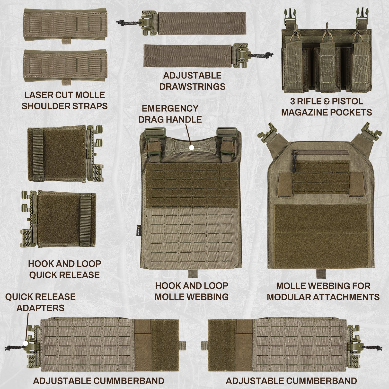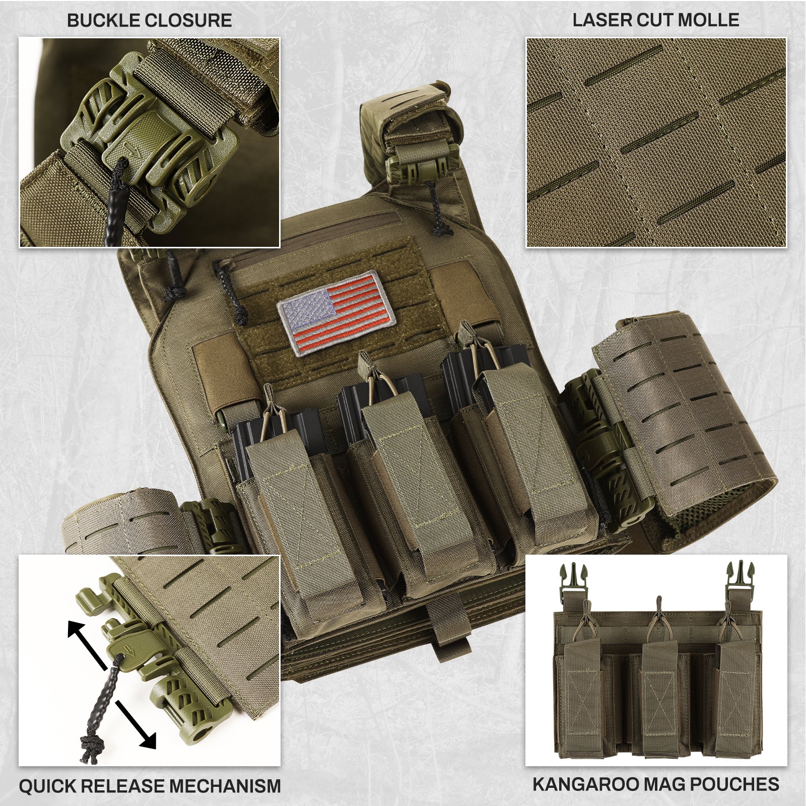 Votagoo 601 Laser Cut Molle Vest Adjustable Plate Carrier Tactical Military Vest