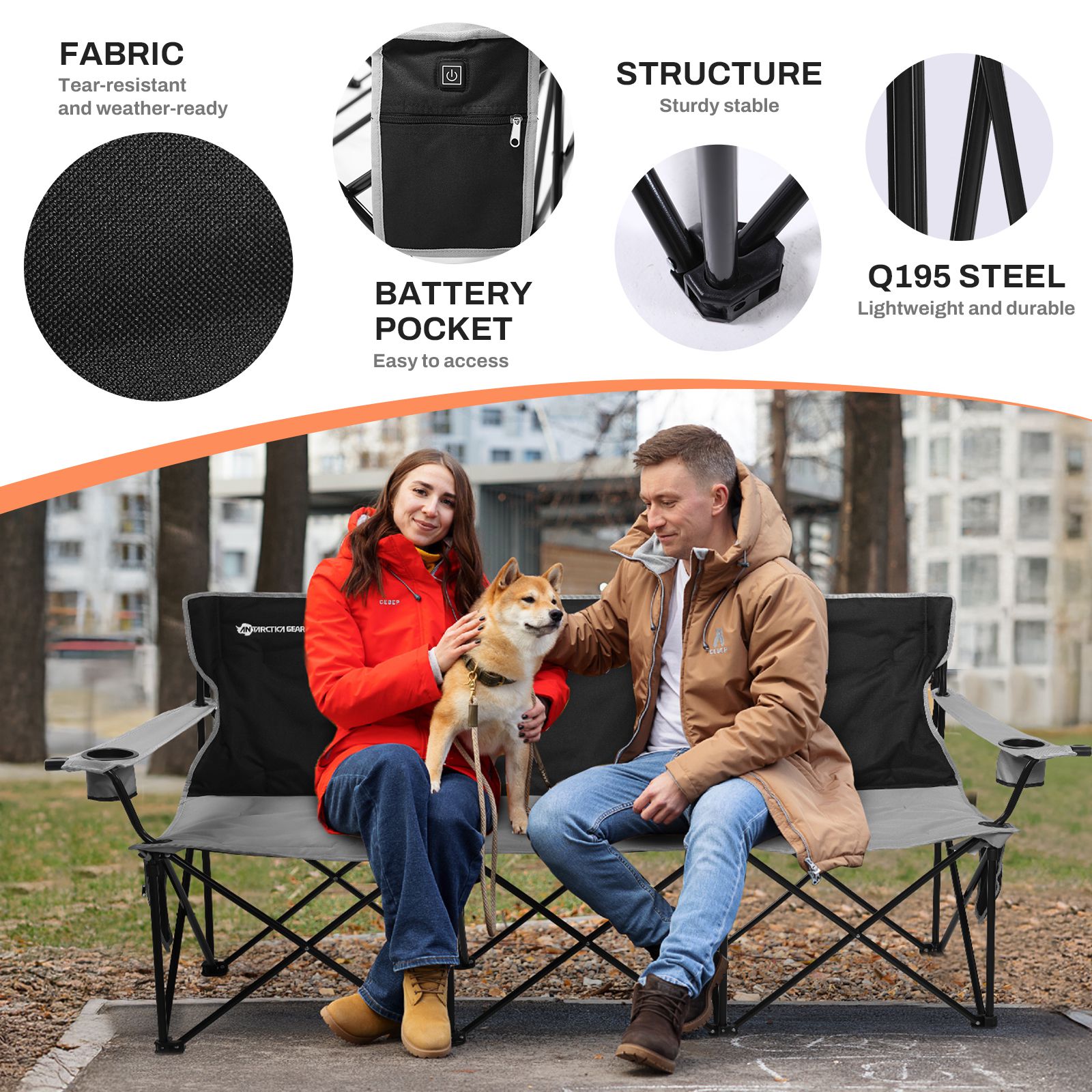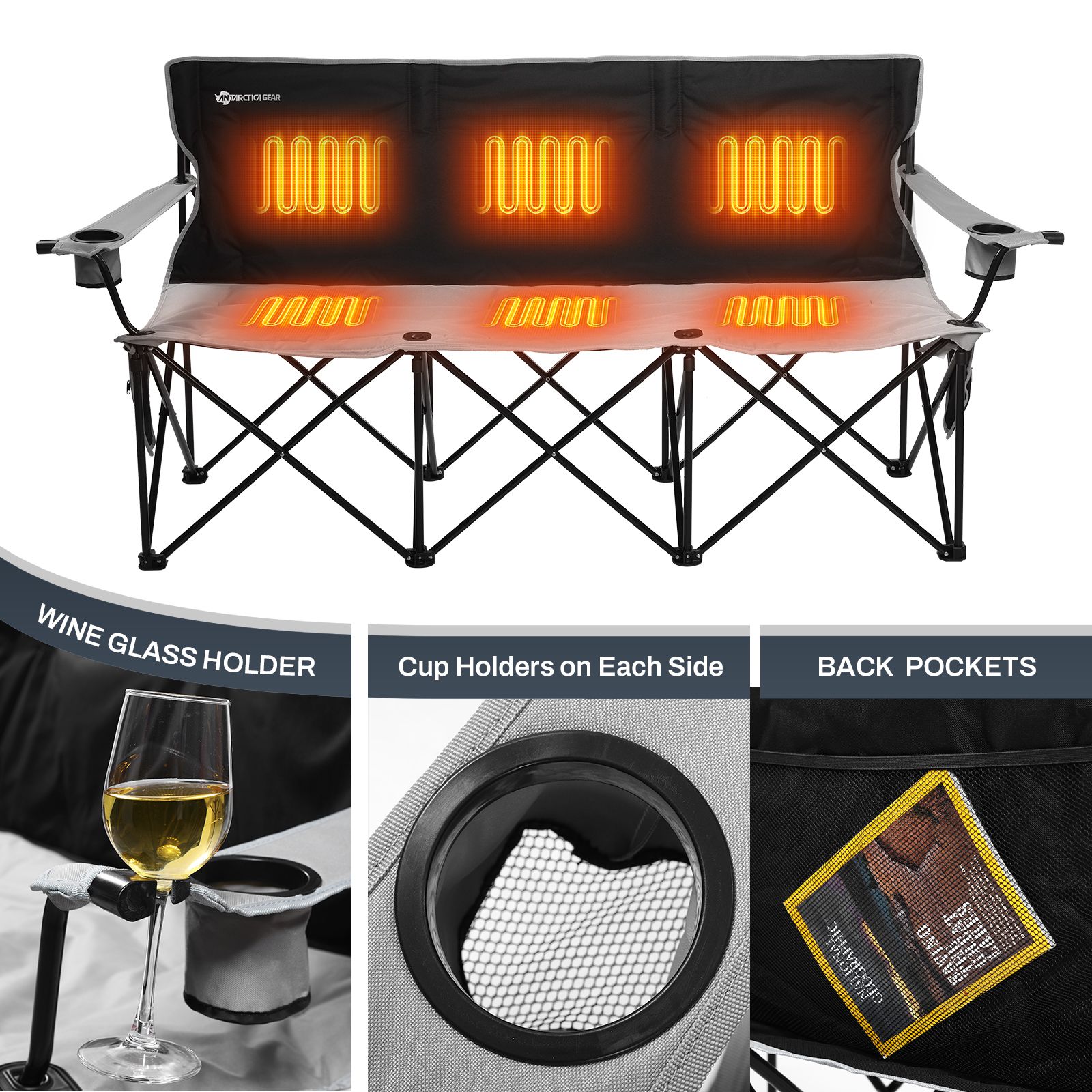 ANTARCTICA GEAR Heated 3-Person Camping Chair with 12V 15000mAh Battery Pack