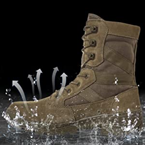 Grip Rubber Outsole: Molded geometric design underneath your sole with brake transverse groove, shock absorption, and two-way drainage area. Improves grip and balance. Ensure quick movement in unforgiving environments and terrains.