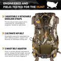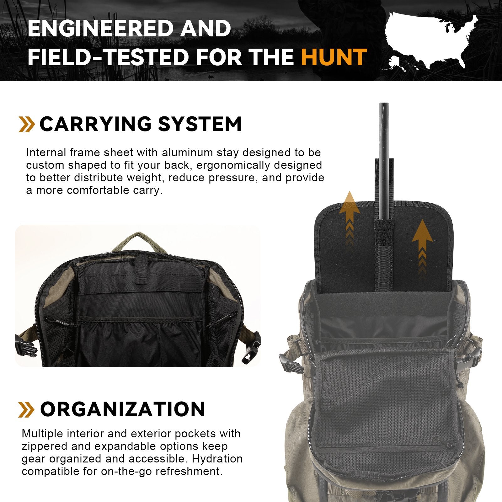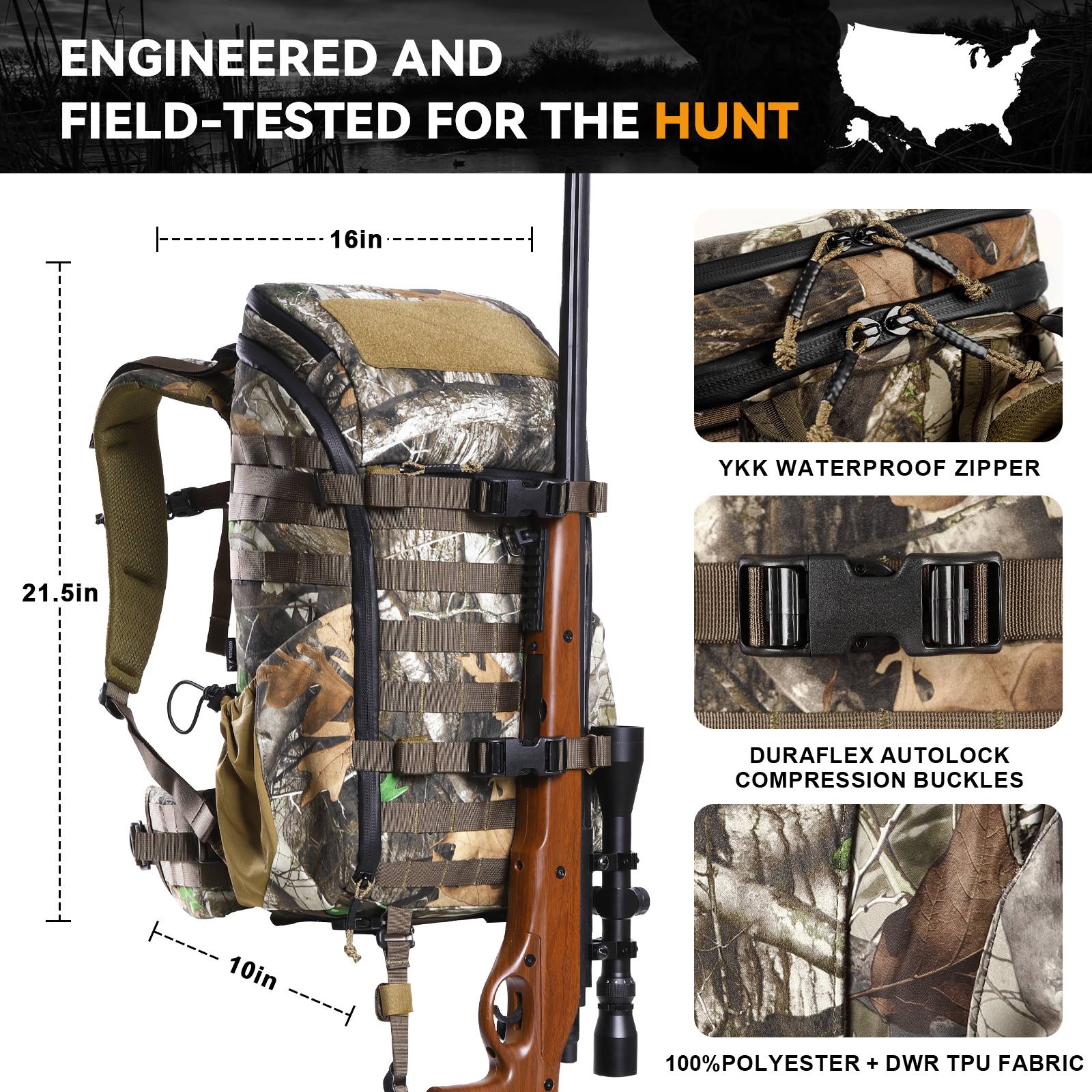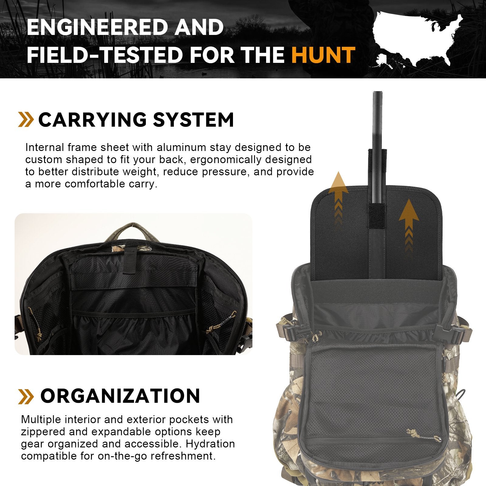 Hunting Backpack with Rifle/Bow Carry System,Customizable Aluminum Frame, 2000ci for Waterfowl and Deer Hunting