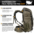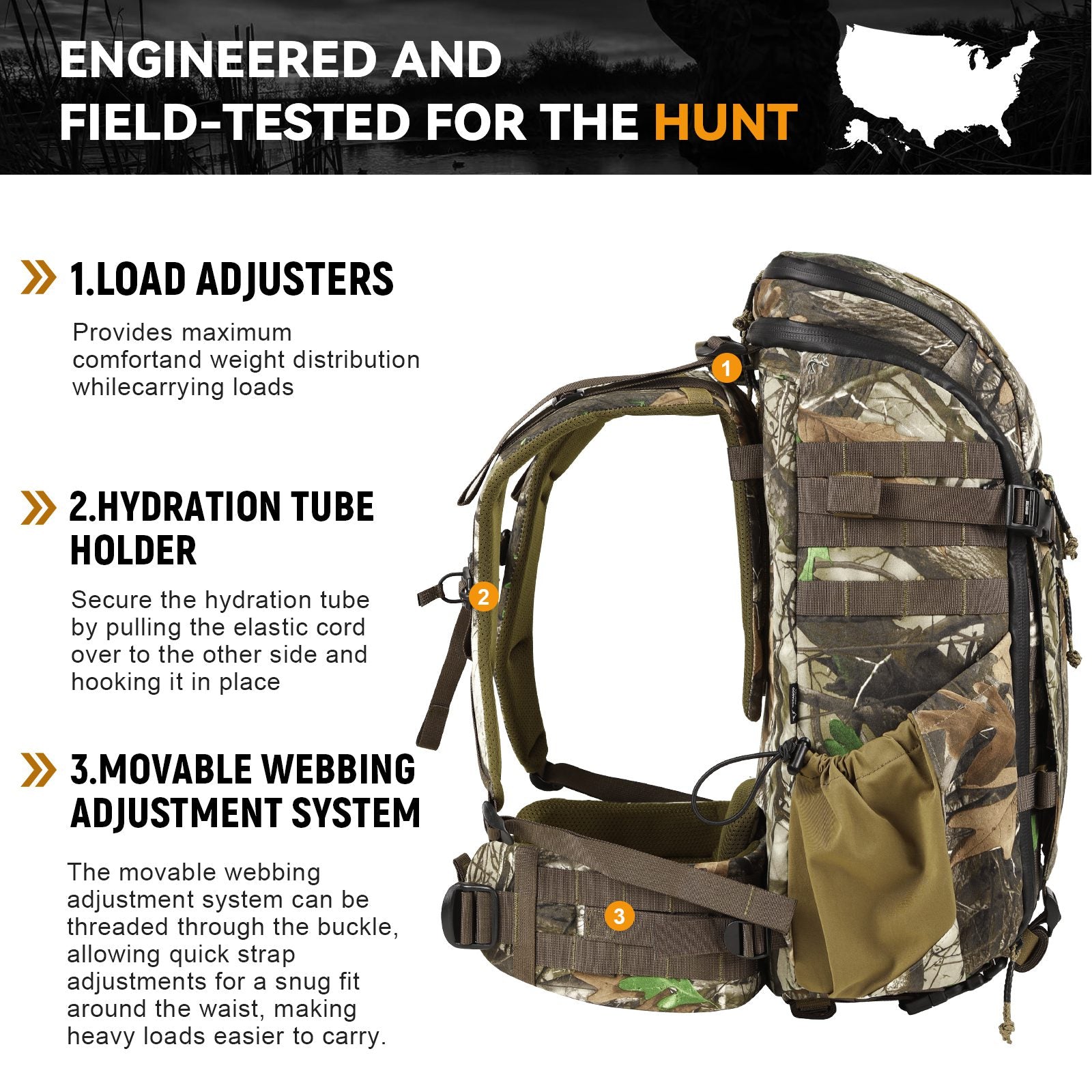- Convenient Storage: Hunting back pack stay energized with a hydration reservoir-compatible compartment and multiple organizational pockets for tools, optics, and rations. Built for durability and comfort, this is one of the best hunting backpacks for men, offering the perfect balance of storage, weapon carry options, and hydration compatibility for all-day performance.
