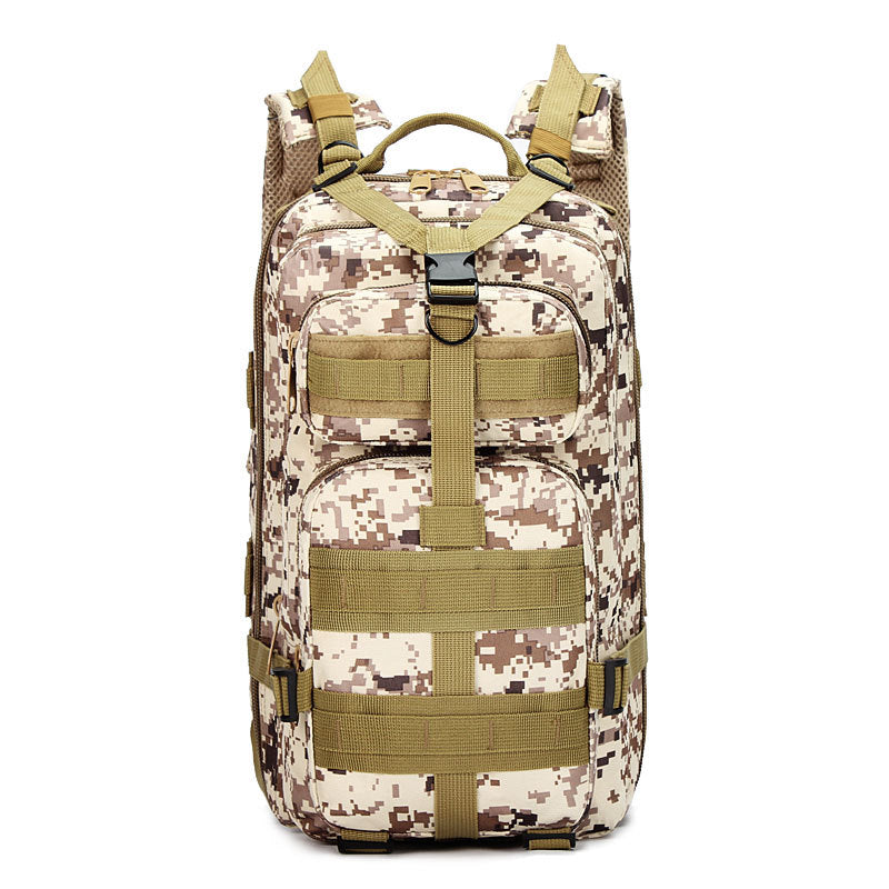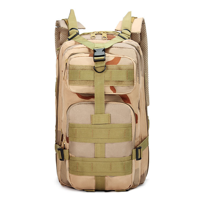 -- Adjustable mesh straps on the bottom of the military backpack are for the sleeping bag or tent, the backpack is suitable for camping or other outdoor activities.